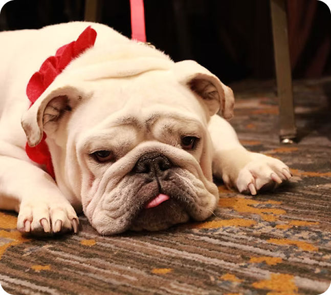 Pig is Dr. Morgan's nine-year-old, deaf English Bulldog. Pig plays a huge role in the TouchStone office by providing emotional support to staff, clients, and patients.